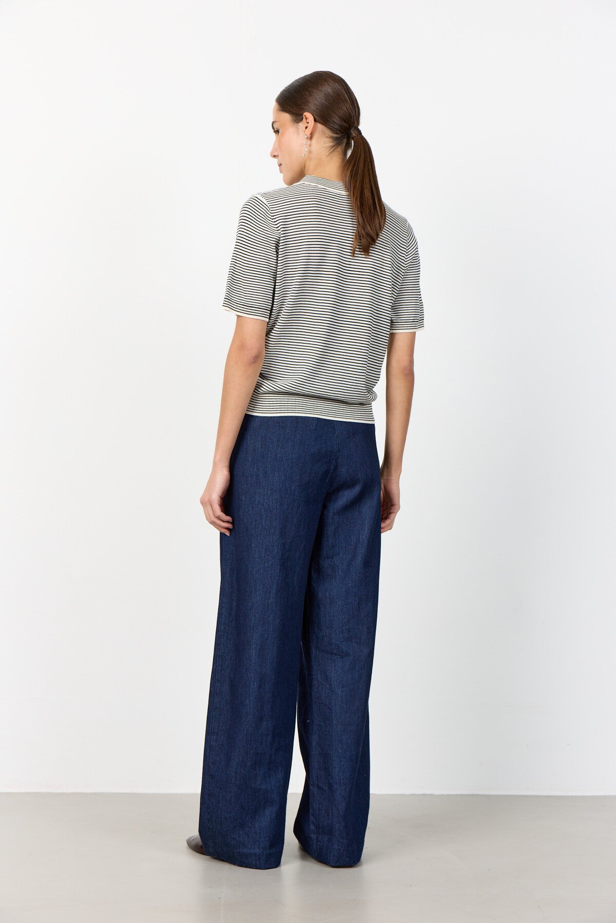 Seat in cm: 34 114, 36 118, 38 122, 40 126, 42 130, 44 134, 46 138 - Inseam in cm: 34 77, 36 77, 38 77, 40 77, 42 77, 44 77, 46 77 - Waist in cm: 34 69, 36 73, 38 77, 40 81, 42 85, 44 89, 46 93 - Bottom hem in cm: 34 52, 36 53, 38 54, 40 55, 42 56, 44 57, 46 58